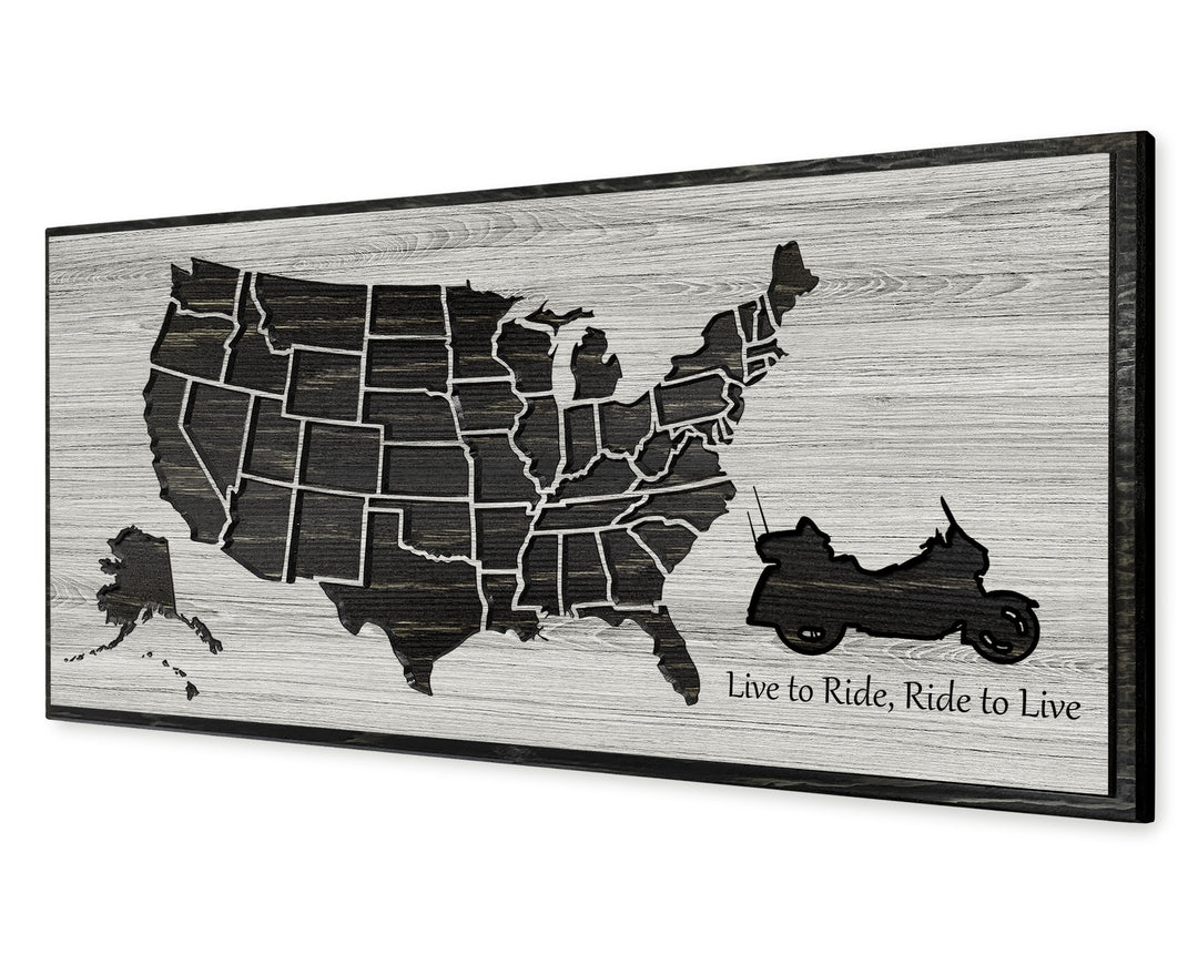 Motorcycle Rider Gifts US Push Pin Map Wood Map